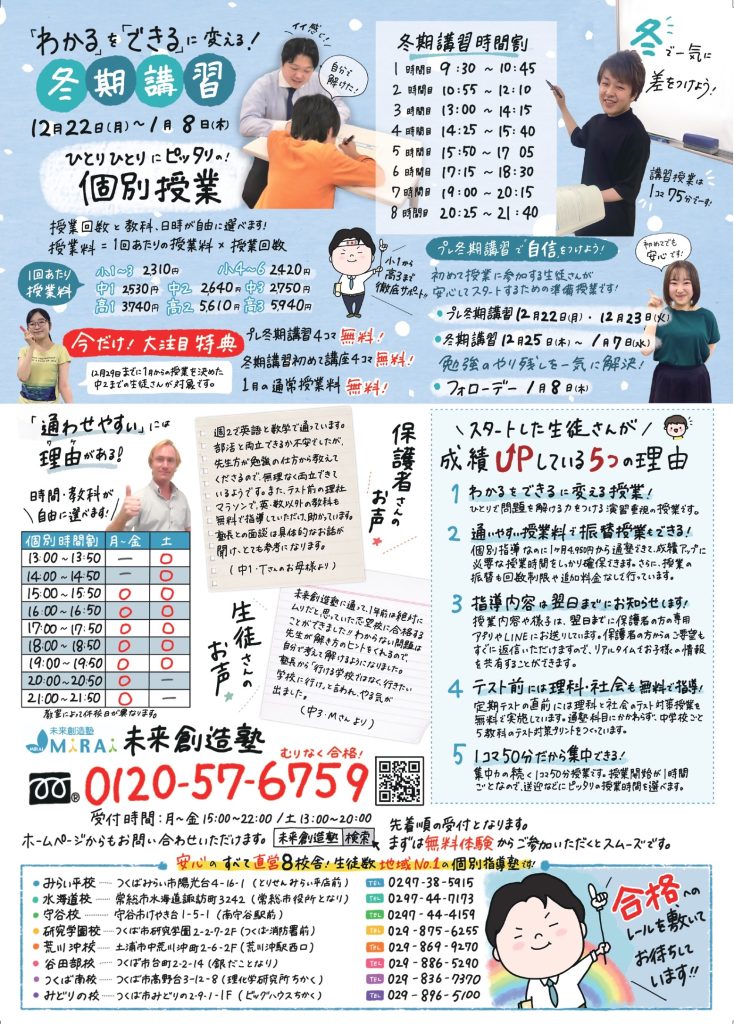 冬期講習期間 12/22(月)-1/8(木)1コマ=75分